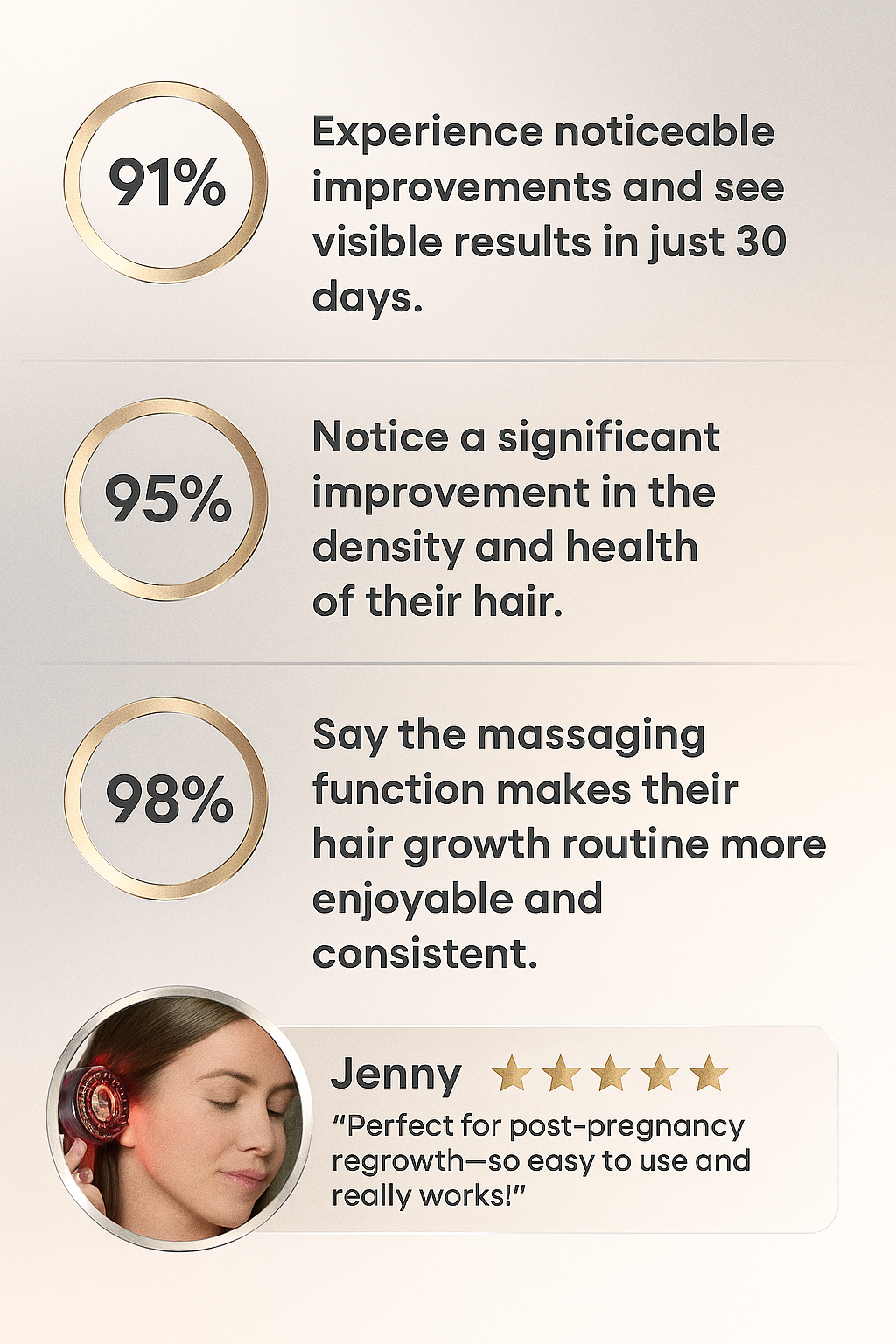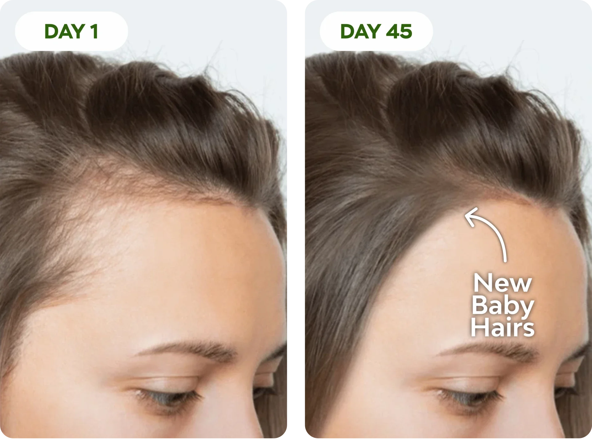 "I read about red light therapy helping with hair regrowth, and this device makes it so convenient. After 45 days, I’m seeing new baby hairs along my hairline. Highly recommend sticking with it!"