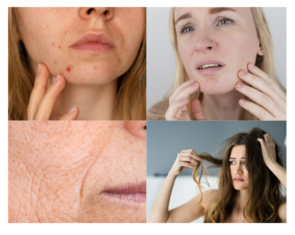 Persistent acne, fine lines/ wrinkles or hair loss can be incredibly frustrating. Despite trying countless products and treatments, the results often fall short, leaving you feeling disheartened and overwhelmed. The constant cycle of breakouts or thinning hair can take a toll on your confidence and self-esteem.