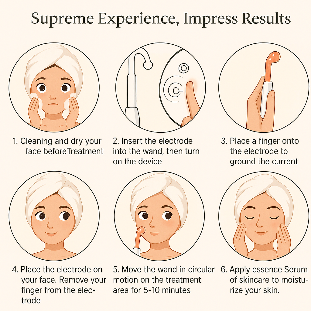 The device emits high-frequency currents that generate ozone, effectively killing acne-causing bacteria and reducing inflammation. This leads to clearer skin and a reduction in breakouts