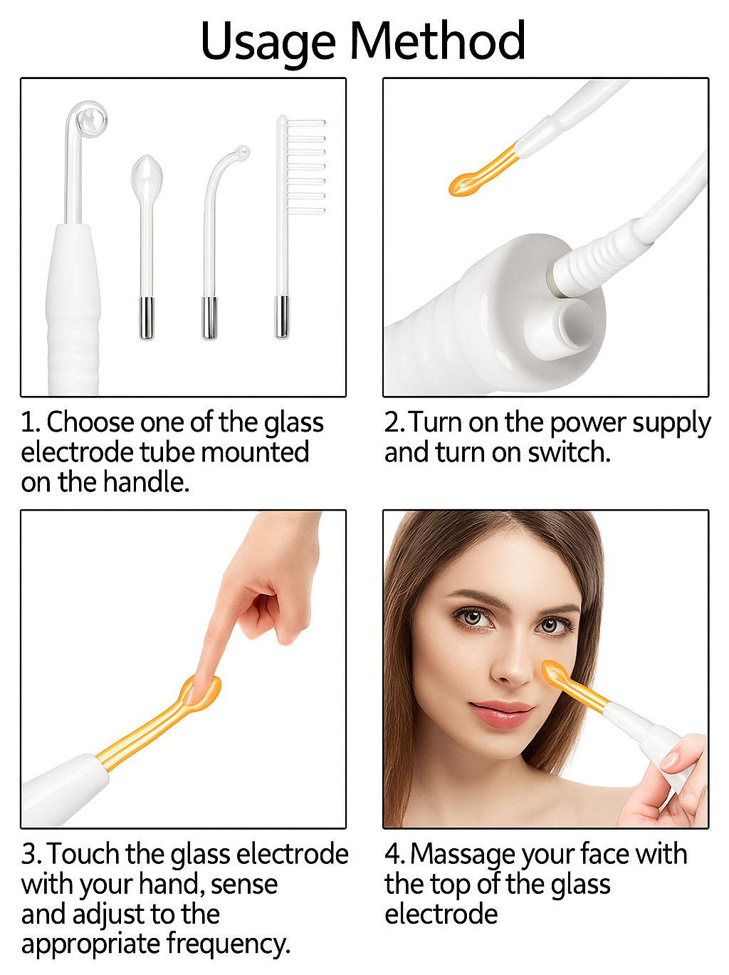 - Massage your desired area/skin with glass electrode.